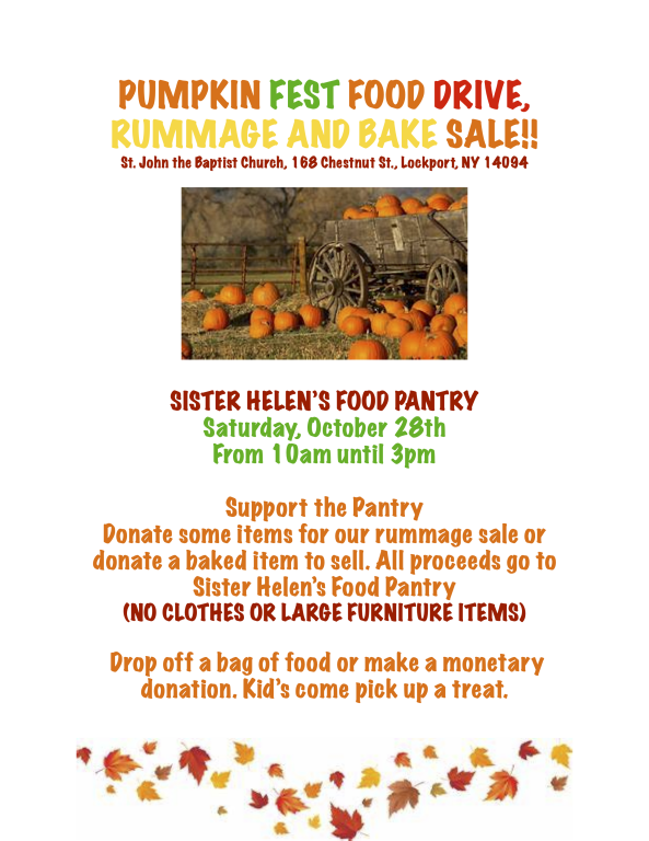 Non-perishable items can be dropped off during mass in marked boxes in both lobbies. Also, from 7:30am - 9:00 in the church lobbies on Monday, Tuesday, Thursday & Friday. Monetary donations are appreciated and can be made payable to St. John the Baptist Church marked Pantry on the check. Hours of Operation - Mon. & Wed. 12noon until 3pm - Sat. 10am until 12noon Client criteria - 1 utility bill or recent ID and age and number of all who live in the household. |